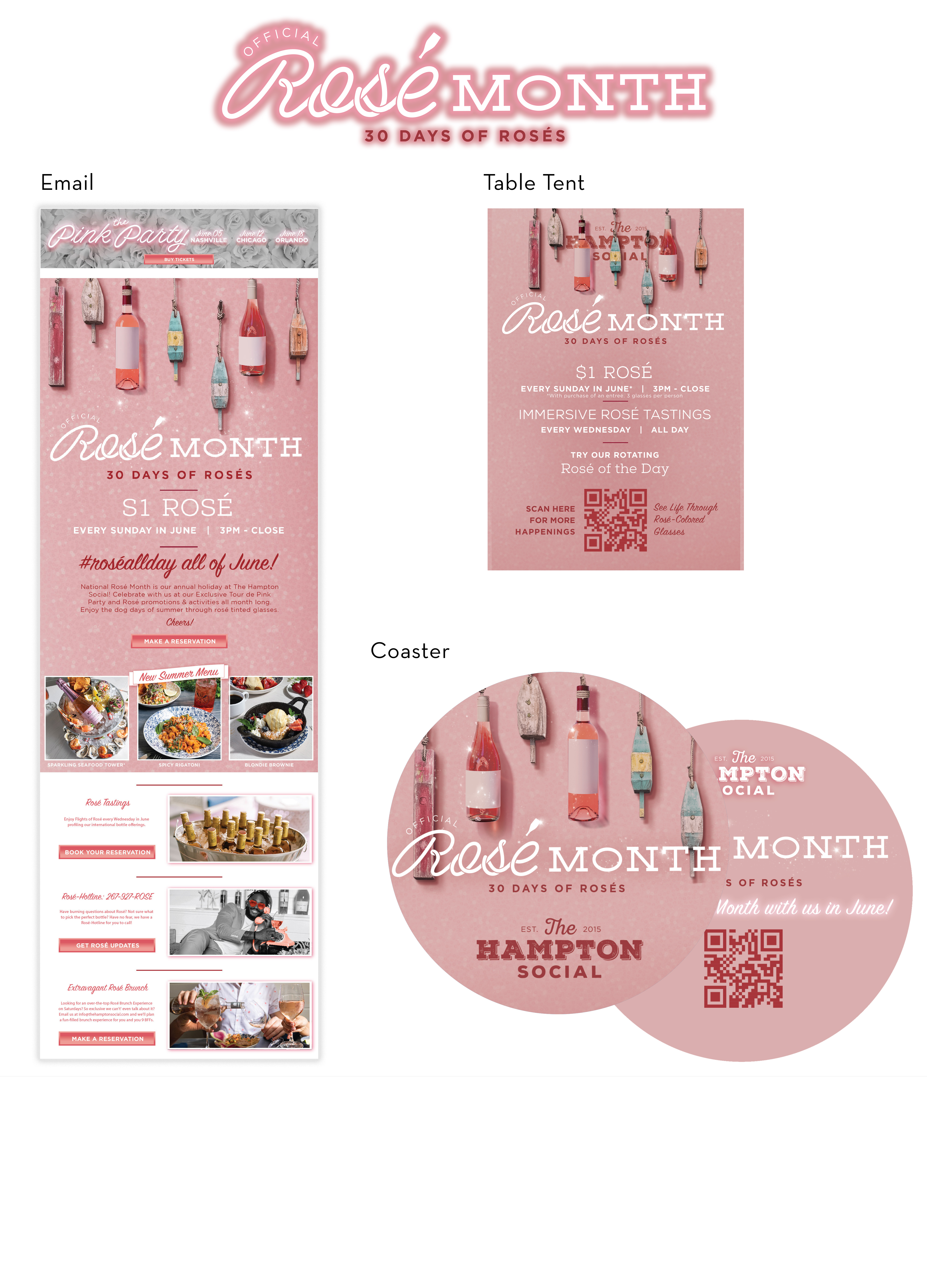 The Hampton Social, who specializes in rosécelebrates Rosé Month every June with unique specials everyday. The month long celebration is topped off with three parties known as the "Pink Party." Starting in Nashville, then Chicagoo and finally in Orlando.
